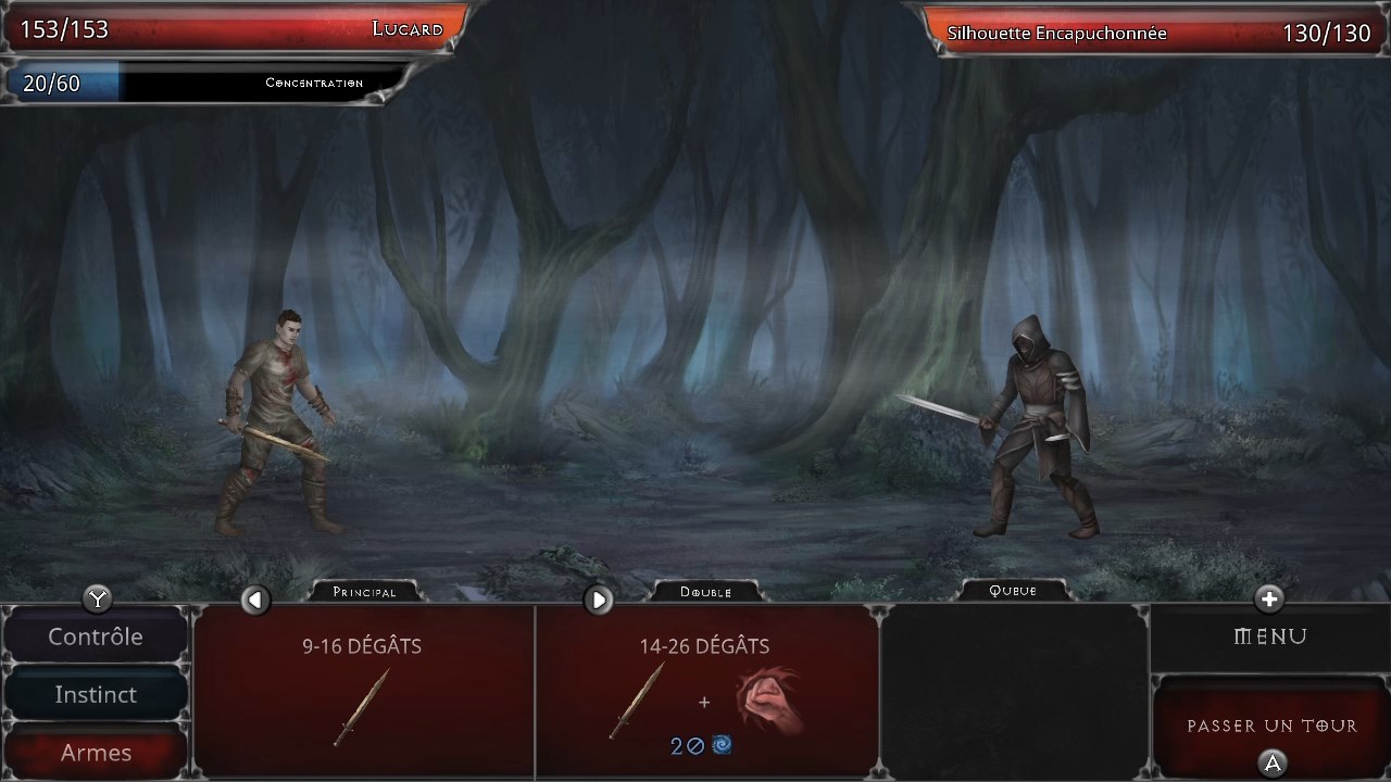 Une fois votre personnage créé, la lignée choisie, le jeu commencera par une petite phase de tutoriel vous expliquant ainsi les divers mécanismes du jeu. Les interfaces des menus se prennent vite en main et sont simples d’utilisation. Les combats quant à eux sont en 2D et se font au tour par tour. À votre barre de vie viendra s’ajouter une barre de concentration vous permettant de donner des attaques, lancer des sorts, le tout lié au nombre de points que nécessitera chaque attaque et aptitude pour être lancée. Tel un véritable petit Diablo-like de poche de par son aspect visuel et ses menus, l’interface de votre héros vous permettra de vous équiper d’un casque, d’un plastron, de jambières, brassards, bottes et bijoux en plus de vos armes. Une charge de poids maximale vous forcera néanmoins à bien gérer votre équipement puisqu’elle vous limitera dans vos esquives en fonction du poids porté, un peu comme dans le procédé des Dark Souls pour les connaisseurs.