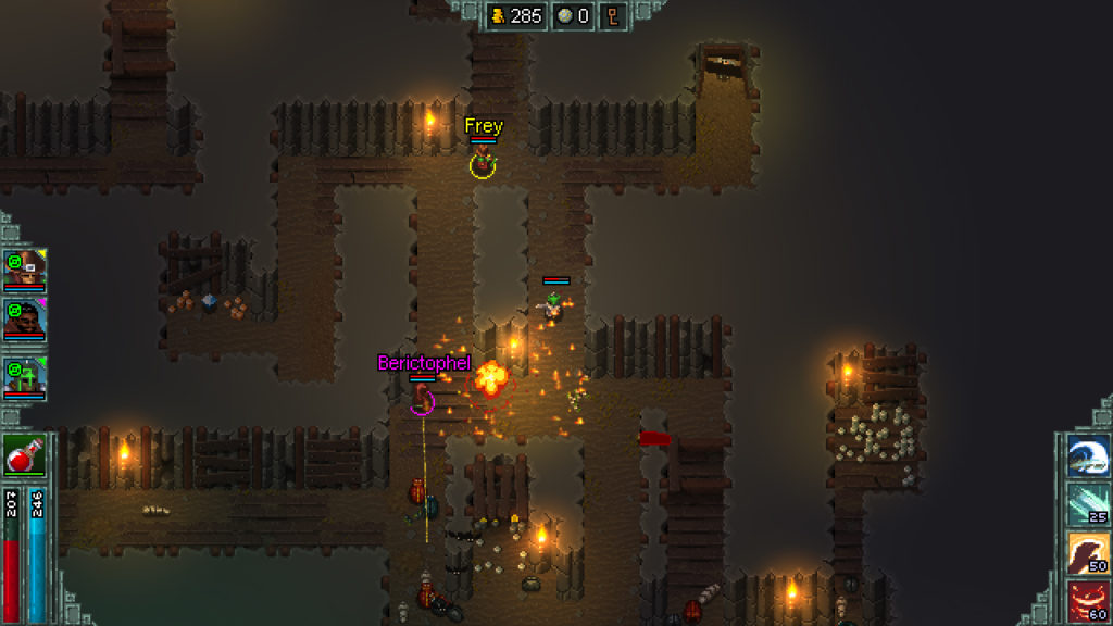 Heroes of Hammerwatch – Ultimate Edition est un Roguelite RPG. Vous allez donc beaucoup mourir. Souvent. Très souvent ! Mais vous reviendrez chaque fois plus fort car vos points d’expérience et certaines capacités sont conservées pour votre prochain run. Vous pourrez également conserver l’or et le minerai récoltés dans un donjon grâce au sans-efforceur (ou ascenseur), permettant de remonter à la surface vos trouvailles afin qu’elles ne soient pas perdues lors de votre décès.