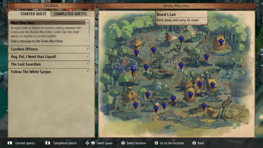 En ce qui concerne l’aspect visuel du jeu, les décors dessinés à la main sont somptueux et révèlent le talent des artistes de chez Talerock Studio. Chaque décor fourmille de détails, apportant cachet et richesse aux différents environnements du jeu et les rendant uniques. La bande son quant à elle est agréable et correcte même si parfois elle ne se prête pas toujours au décor qui l’entoure.