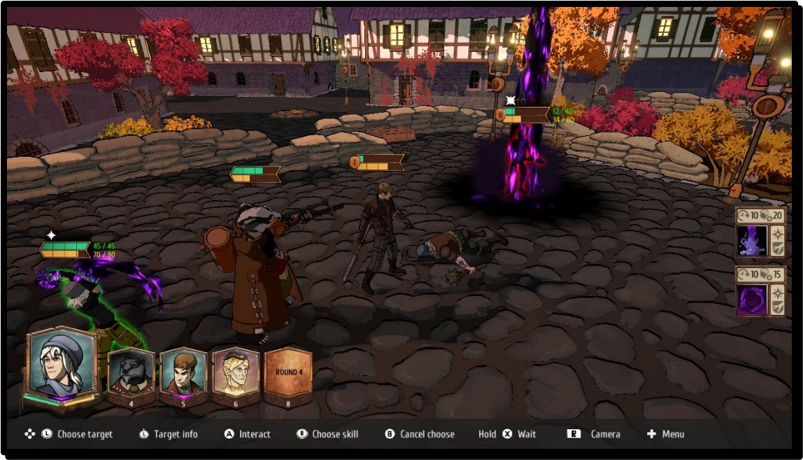 Concernant le gameplay, il s’agit d’un RPG tactique. C’est-à-dire que les combats se font au tour par tour comprenant une phase de placement sur la zone de combat, un peu à la manière d’un échiquier, dans laquelle vous aller devoir placer vos personnages intelligemment ainsi : les tanks devant et les tireurs, lanceurs de sorts et archers, derrière. Le tout sera alors suivi par une phase de combat.