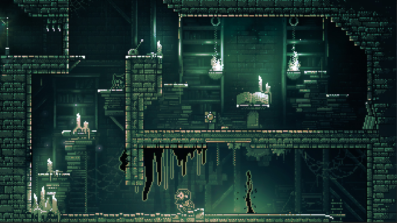 - Un chevalier armé d’une épée et d’un grappin, donnant un sentiment de puissance car quasiment invincible face aux mêmes créatures de l’ombre, pour des phases un peu plus « Beat’em up ».