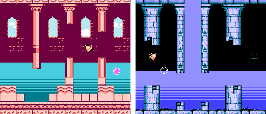 Ainsi, vous incarnez une petite bulle dont l’objectif sera de monter au septième ciel et, éventuellement, de retrouver tous les canards de bain. Premier point, graphiquement, c’est irréprochable, tout est vraiment beau, pour des contraintes NES, mais aussi avec un temps très limité et en étant seul à avoir travaillé dessus sur un délai de deux mois : on comprend aisément la première place qui pourrait se justifier à elle seule par la propreté irréprochable du titre, de plus, l’onirisme du contrôle d’une bulle dans un monde dépourvu d’ennemis est porté par une musique vraiment très cool qui aurait sa place sur un CD d’ost et ça, tous les jeux payants ne peuvent pas s’en vanter !