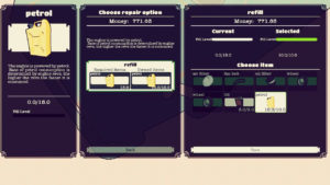 Le game over est toujours omniprésent. On perd si on se retrouve à court d’argent. On perd si on se retrouve à court d’essence ou si notre voiture tombe en panne et qu’on n’a pas les pièces de rechange nécessaires. En réalité, le jeu nous ramène à notre point de départ, notre restaurant, et nous pourrons reprendre la route sans avoir à refaire les étapes déjà réalisées et les visites déjà effectuées.