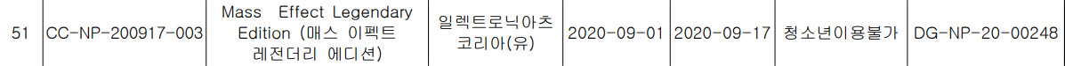 L’organisme de classification Coréen, Game Rating and Administration Committee of Korea, vient de listé le toujours pas annoncé Mass Effect Legendary Edition.
