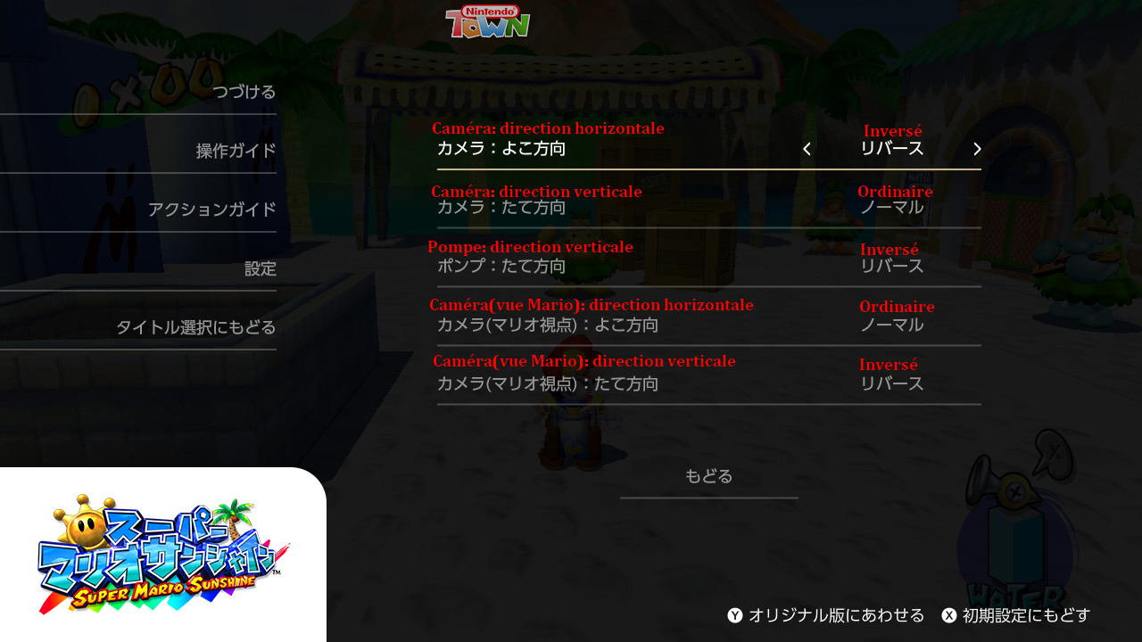 Ce seront donc Super Mario 64, Super Mario Sunshine et Super Mario Galaxy qui auront droit à cette inversion dont on vous représente ici les screens officiellement communiqués par Nintendo (et retranscrits en Français par nous).