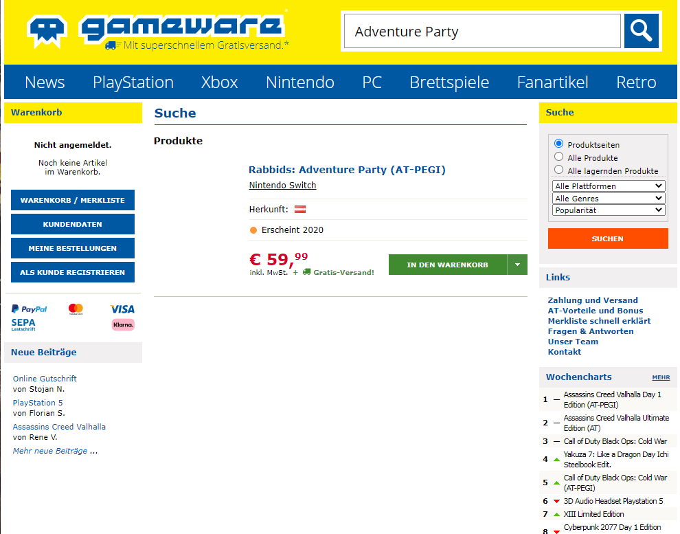 Si The Lapins Crétins Land sur Wii U n’était clairement pas un grand Party Game capable de marquer les esprits : en serait-il autrement pour Lapins Crétins : Adventure Party, jeu exclusivement réservé au marché Chinois, du moins dans un premier temps. Car oui, le jeu à été listé chez le revendeur GameWare !