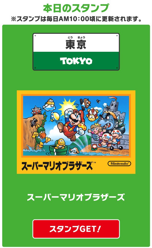 C’est tôt ce matin que Nintendo annonce dans le cadre des 35 ans de Mario, une collaboration avec la société ferroviaire japonaise JR. C’est un peu comme si chez nous, Nintendo France s’associait avec la SNCF et la RATP pour proposer ce petit jeu à tous. A partir d’aujourd’hui et jusqu’au 17 Décembre 2020, le « Super Mario Stamp Rallye » démarrera à travers la capitale japonaise. Chaque jour, la société JR diffusera des « Stickers » virtuels à l’effigie des jaquettes des jeux Mario dans différente station de train JR de Tokyo et à collectionner via le site. Un calendrier allant jusqu’au 17 Décembre est déjà publié et répertorie les 3 stations qui diffuseront des Stickers chaque jour à partir de 10h du matin. Tous les jours, ces trois stations sont donc différentes. Il y a bien entendu des récompenses pour les participants à ce Rallye, notamment la possibilité de participer à un tirage au sort et faire partie des 3500 personnes qui repartiront avec une pochette physique pour ses cartes à l’effigie du « Super Mario Stamp Rallye« . Puis également des « Fond d’écrans » spéciaux pour ceux possédant des « Sticker » de station spécifique ou ceux ayant eu le courage de rassembler chacun des 35 « Stickers » qui seront diffusés. On vous laisse quelques images provenant de cet évènement ci-dessous. Du côté du Jeu Vidéo, n’oubliez pas la possibilité de vous procurer la collection Super Mario 3D All-Stars disponible exclusivement sur Switch et pour une période limite jusqu’au 31 Mars! Notre test est d’ailleurs ici.