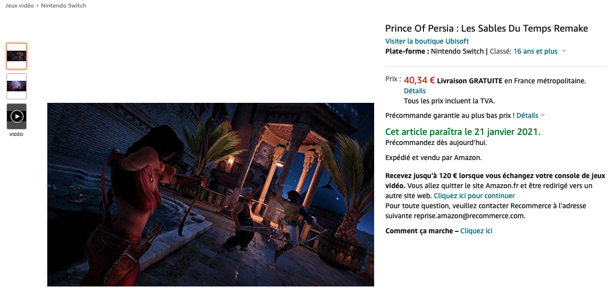 Prince of Persia: The Sands of Time Remake est lui aussi listé sur Nintendo Switch à cette adresse pour une sortie le 21 janvier 2021.