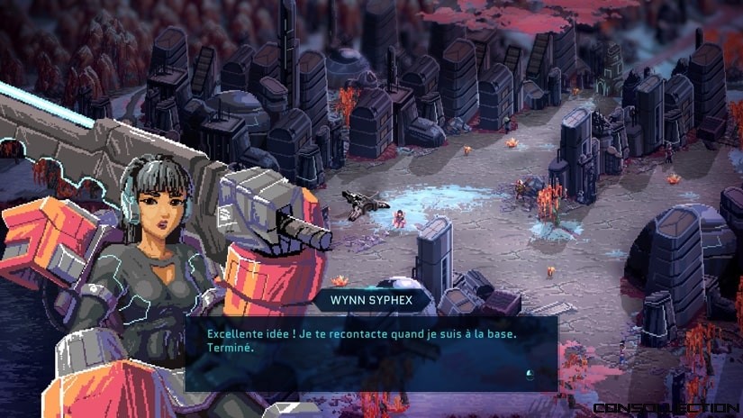 Star Renegades nous amène donc dans une réalité menacée par un étrange groupuscule qui s’attaque à la planète de notre héroïne à travers une multitude de dimensions différentes. Et comme si cela ne suffisait pas, une scientifique faisant partie de la résistance, dans une dimension déjà tombée aux mains des méchants, a mis au point un robot permettant de transmettre des données à une dimension en plein combat ou proche de tomber. Vous me suivez toujours pour l’instant ? Si l’histoire vous parait un peu floue et complexe, ne vous inquiétez pas, elle s’éclaircira au fur et à mesure grâce aux interactions entre vos personnages et par les bribes d’informations que vous allez trouver au cours de l’aventure.