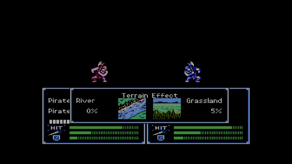 Possibilité de changer le rythme de jeu, de créer une sauvegarde rapide et un chargement rapide ou de faire un retour en arrière. Il est également possible de changer l’affichage du jeu entre Normal et Pixel Perfect. Des options bienvenues sur ce portage NES. Bien que les options d’affichages ne changeront pas grand-chose pour vos yeux. Une réalisation plutôt bonne pour de la NES avec des animations d’affrontements plutôt épiques pour cette époque. Sur la partie sonore, on a des thèmes qui font partie de l’héritage musical de la série encore aujourd’hui, à travers des arrangements et de nombreuses reprises. Des musiques dont on se plaît à entendre ici dans leur version originale accompagnant les divers moments du récit de cet opus genèse de la série Fire Emblem.