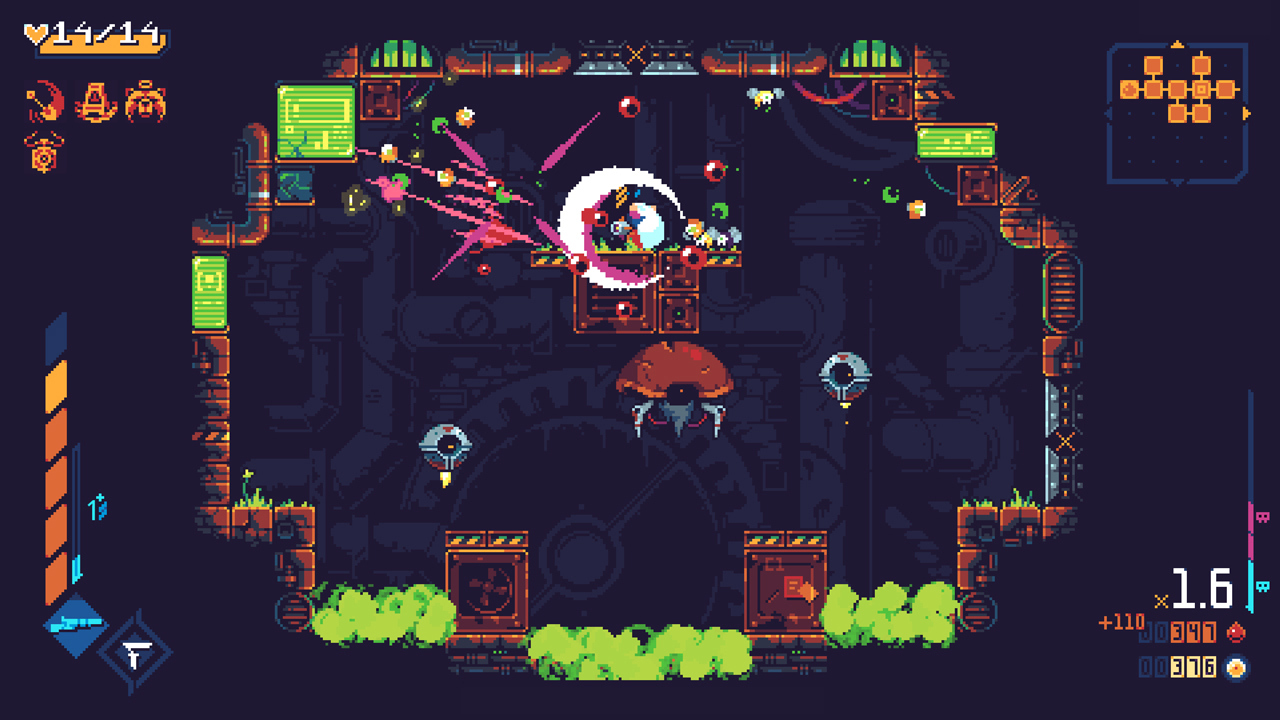 Car oui, nous sommes dans un rogue-lite. Avancer vous permettra certes de débloquer après chaque mort de nouveaux avantages dans votre arbre, mais cela impliquera de recommencer, encore et encore et malgré l’extrême fluidité du titre, le voilà tel un They Are Billions, un jeu s’adressant à une niche dans la niche. Car si le jeu est pourvu d’une grande quantité de créatures, boss et décors, le tout reste assez similaire et, dans un jeu que vous terminez avec deux ou trois morts sans tout recommencer, cela ne poserait aucun souci.