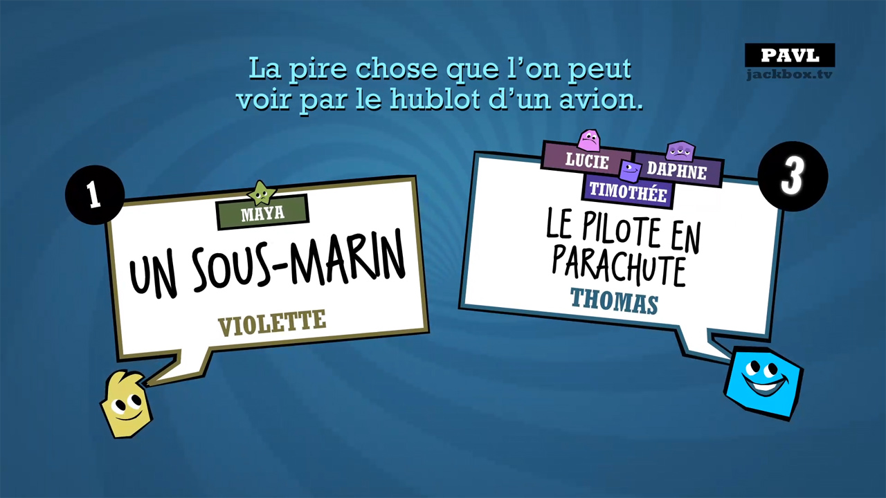 Sans doute n’êtes-vous pas passé à côté du célèbre jeu de société « blanc manger coco » désormais décliné sous de multiples variantes. Reprenant sensiblement les mêmes codes, quoi que bien (BIEN) plus sage, Jackbox Games nous propose d’extraire un des jeux de leurs célèbres compilations Jackbox. Comble du bonheur : il est en français (et pas que, pour les polyglottes !).