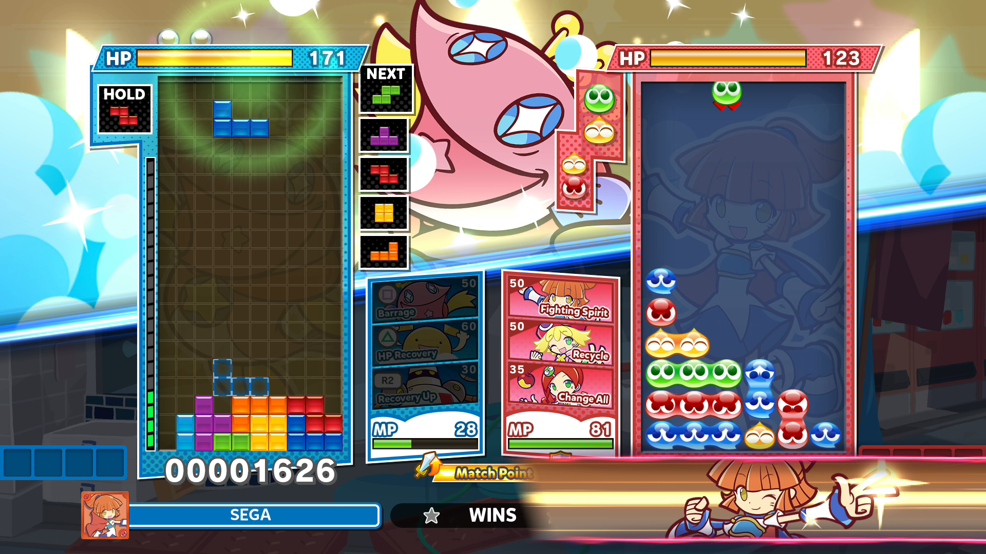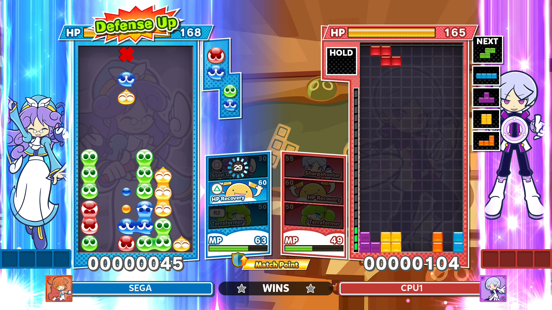 Comme toujours en mode combat de talents, les joueurs pourront créer leur équipe en profitant d’une liste étendue de personnages et préparer un groupe aux compétences complémentaires afin de l’emporter. Lors de la partie, vous exploserez des Puyos et vous alignerez des Tetriminos, en libérant des Puyos gris pour infliger des dégâts au boss. Quand les PV du boss tombent à 0, vous avez gagné !