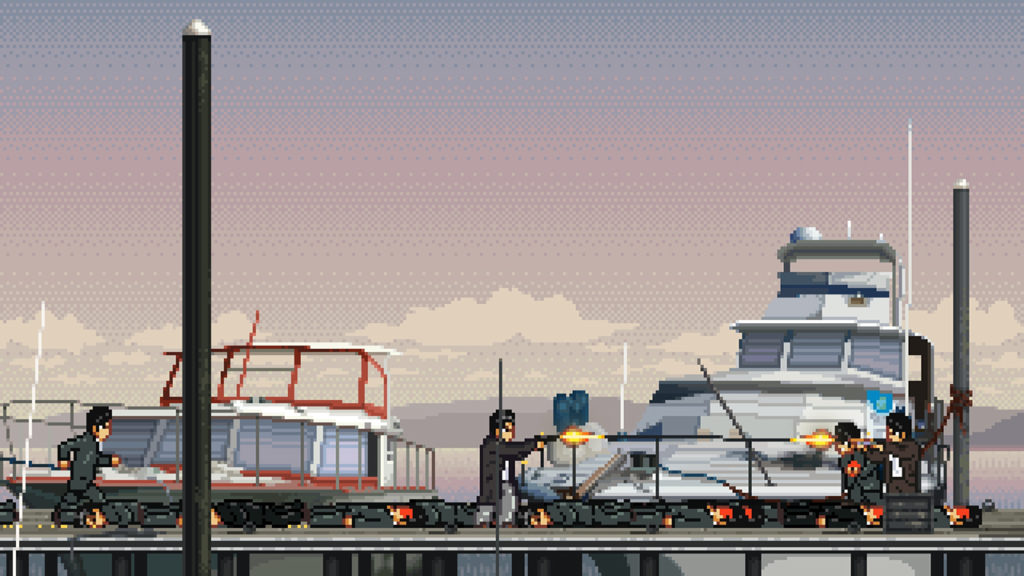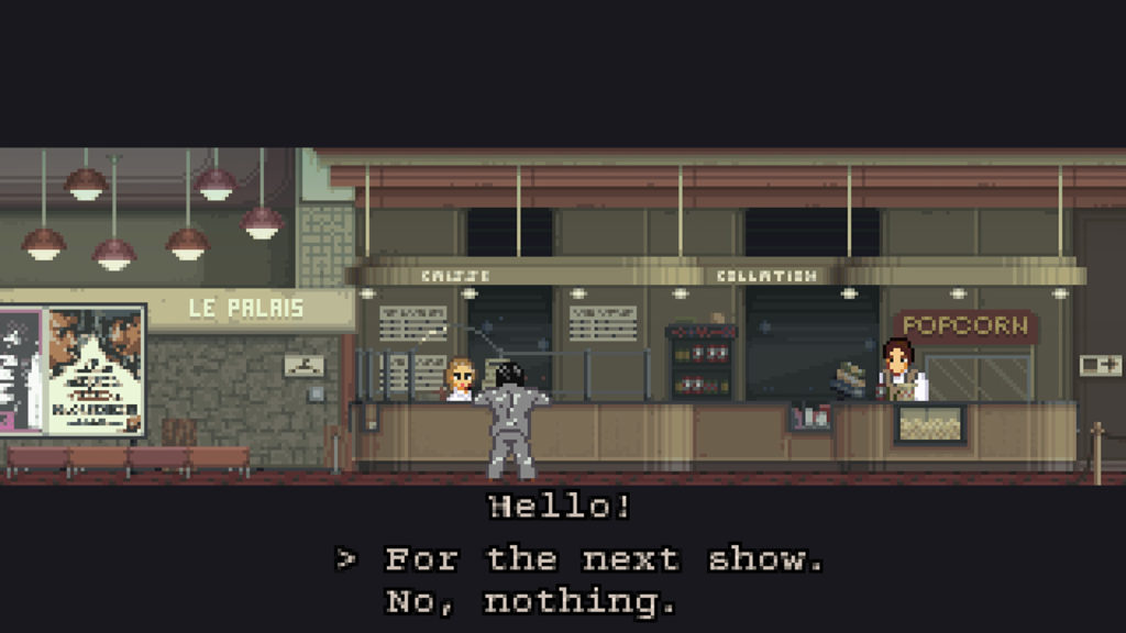 Tout au long de l’aventure, le jeu est assez avare en explications. Entre deux phases de shoot, on se retrouve à arpenter les rues grises de Paris en 1976. On peut ainsi entrer dans une pharmacie, un cinéma, un bar et son appartement. On rencontre un acolyte qui nous parle du bon vieux temps. Rien n’est explicité, on a l’impression d’être face à un jeu expérimental ou un film à la Melville comme Le Samouraï…