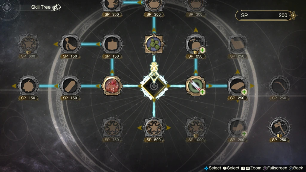 Une fois votre liste de courses faite, il est temps de sortir en dehors des murs pour vous lancer à l’assaut de tous les brins d’herbes et tous les cailloux sur votre chemin. Les ingrédients que vous récoltez iront directement dans votre panier. Contrairement au premier opus, pas besoin d’avoir la version collector ni d’agrandir votre panier en cours de route, il est déjà au maximum de sa capacité. Cela dit, aucun panier ne sera jamais assez grand pour contenir tout ce que le jeu vous proposera. Certains ingrédients ne pourront être récupérés que sur les monstres. Il vous suffira de foncer dessus ou de les taper avec votre outil pour engager le combat. Dans ce second cas, en fonction de l’outil équipé, le combat commencera avec un malus pour tous les monstres (ce qui n’était pas le cas dans le premier opus, seul un monstre parmi le groupe était ciblé). Sur chacune des cartes, vous trouverez un mini-boss (symbolisé avec une tête rouge). Il s’agira d’un monstre plus fort que les autres mais avec des récompenses aussi plus intéressantes. A vous de voir si vous préférez le combat ou la récolte. En parlant de la récolte, cet opus propose un fonctionnement basé sur votre niveau de récolte. Vous pouvez augmenter ce niveau via la création de meilleurs outils mais aussi en améliorant les bonnes compétences dans votre arbre de compétences. Lorsque le niveau de récolte augmente, tous les ingrédients que vous trouvez deviennent de meilleure qualité et les points de récolte vous proposent plus de choix. Ce qui fait que vous pouvez obtenir de très bons composants sur la toute première carte du jeu si votre niveau de récolte est élevé.