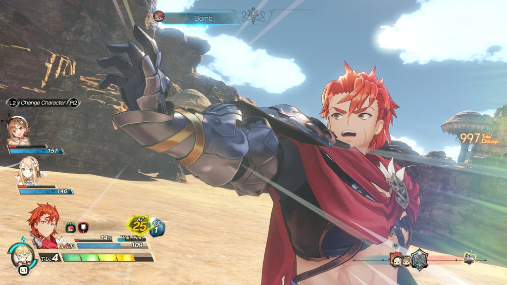 Un autre changement dans Atelier Ryza 2 est la gestion de l’équipe au combat. Dès que vous aurez suffisamment de personnages, vous pourrez compléter votre équipe de trois avec un personnage de soutien. Ce personnage dispose de sa propre jauge d’attente et lorsqu’elle est pleine, vous pourrez l’appeler instantanément au combat pour remplacer votre personnage actif. Cette action vous permet de gagner quelques points d’action tout en infligeant des dégâts et de continuer à enchainer les combos sans aucun temps mort (à condition d’avoir assez de points d’action en réserve). Bien que cela soit frustrant au début avec des ennemis n’ayant pas assez de points de vie, vous ne pourrez plus vous en passer dès que vous tomberez sur des monstres ou boss un peu plus coriaces. Combinez cela à l’utilisation d’objets et aux compétences d’ordre de vos alliés, et vous aurez des combats palpitants et spectaculaires. Et puis comme si cela ne suffisait pas, une fois vos personnages au niveau 50, vous débloquez une nouvelle compétence « Impulsion mortelle » qui se déclenchera exactement de la même manière que dans le premier opus. Une fois le Niveau Tactique au maximum (c’est-à-dire 5), vous pourrez déchaîner toute votre puissance d’attaque en une somptueuse symphonie visuelle dont la force est proportionnelle aux points d’actions restants lorsque vous la déclenchez. Toutefois, votre Niveau tactique retombe à 1 une fois utilisée et cette compétence ne peut être utilisée qu’une fois par combat.