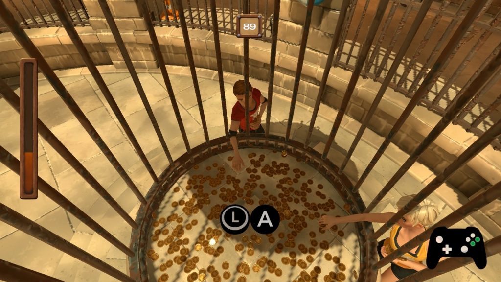 Nous arrivons enfin au bout de l’aventure avec la Salle du Trésor. Nous découvrirons enfin les indices que nous avons durement gagnés. Si par malchance nous ne trouvons pas le mot clé du premier coup, nous aurons perdu un peu de temps, mais nous avons une deuxième chance avec un nouvel indice. Une fois les boyards tombés à nous d’en ramasser le maximum dans le temps restant. Ici, que nous soyons seuls ou à quatre, un seul joueur pourra jouer dans la salle du trésor les autres étant contrôlés par l’IA. L’intérêt s’avère donc très limité pour certaines épreuves.