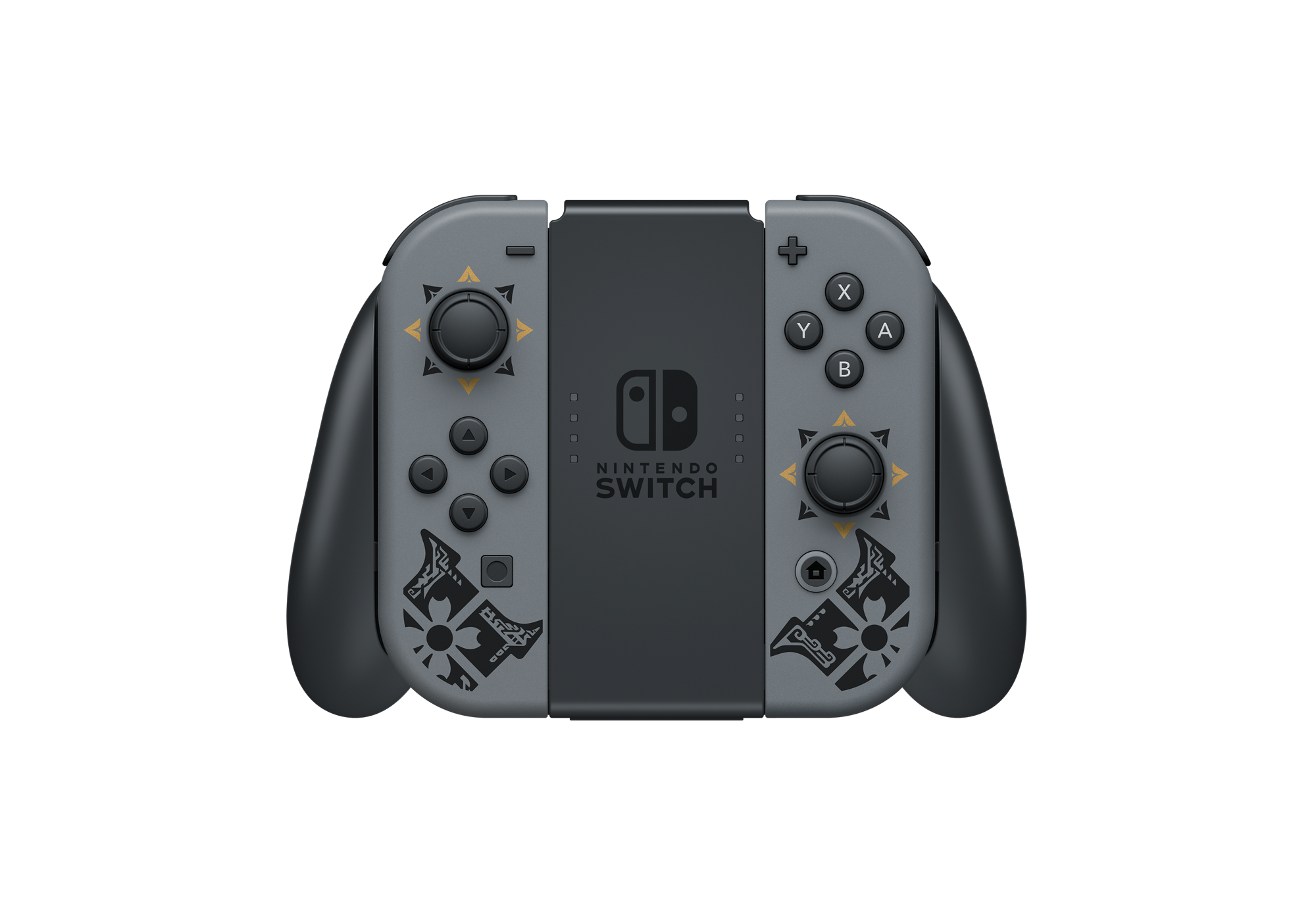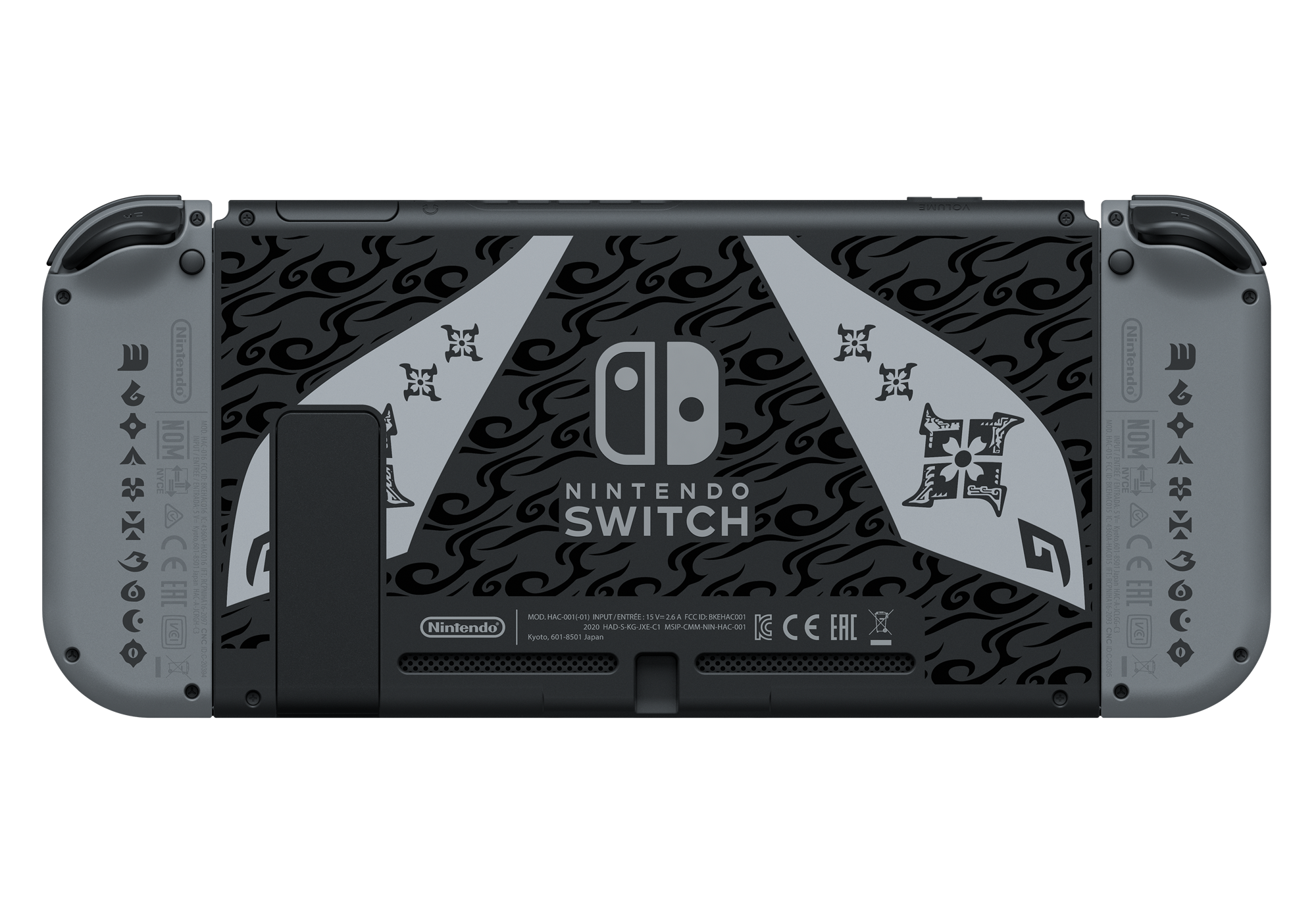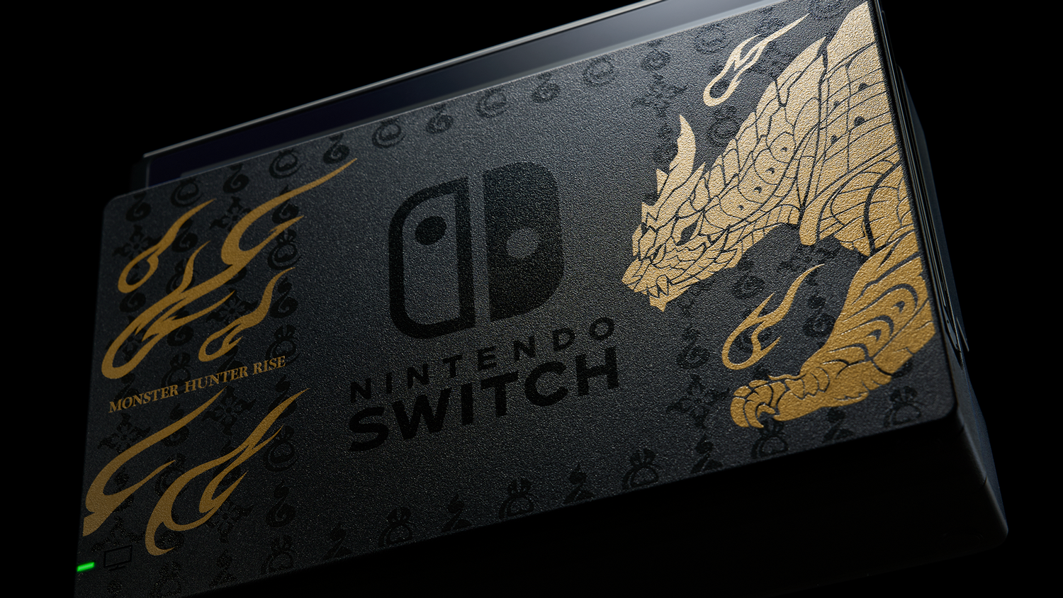 La Nintendo Switch™ édition MONSTER HUNTERcomporte une illustration du monstre emblématique du jeu,Magnamalo, sur la station d’accueil, ainsi que des motifs caractéristiques de MONSTER HUNTER RISE décorant la console et les manettes Joy-Con. Elle contient également un code de téléchargement pourMONSTER HUNTER RISE, le DLC du kit deluxe* et un contenu bonus**.La manetteNintendo Switch Pro édition MONSTER HUNTER RISE™, vendue séparément, dispose également d’un design rappelant Magnamalo.