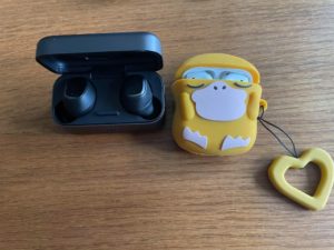 Le boîtier est classique et servira de recharge en plus de bien protéger vos écouteurs sans fils. Toujours dans le classique, des diodes bleues indiquent la charge du boîtier (la batterie donc). Il se recharge via UBS-C (câble fourni). Les écouteurs se connectent à tout ce qui produit du son et est compatible Bluetooth. On a essayé avec un iPhone 12 mini, iPhone 12 classique, un HTC et une sous-marque du type Huawei (j’attends les haters d’ici peu en commentaires rien que sur cette phrase). Le couplage se fait rapidement avec les paramètres classiques. Côté portée, d’après nos tests, on est à environ 10 mètres avec deux murs en béton entre les deux. Autrement dit, c’est plus que nécessaire. Ma femme a pu tester sa musique dans toute la maison.