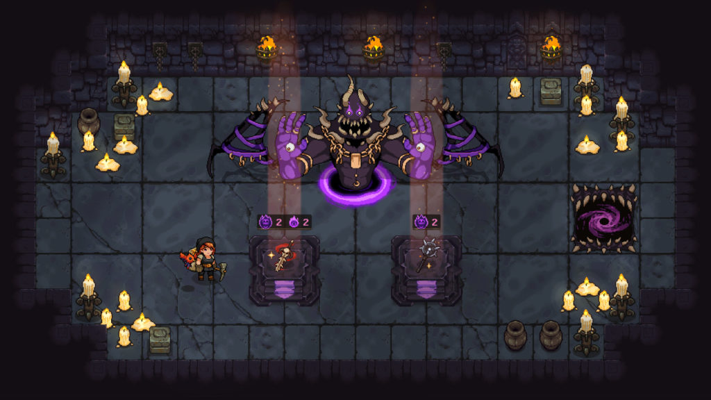 La vue d’au-dessus, la procéduralité du jeu et sa découverte de zone classique (salle avec des monstres, des coffres, une boutique, une relique) et surtout son gameplay accessible nous font penser à The Binding of Isaac. Mais ça s’arrête là, le jeu n’est pas sombre, nous jouons avec beaucoup de corps-à-corps et surtout, c’est un Roguelite et pas un Roguelike !