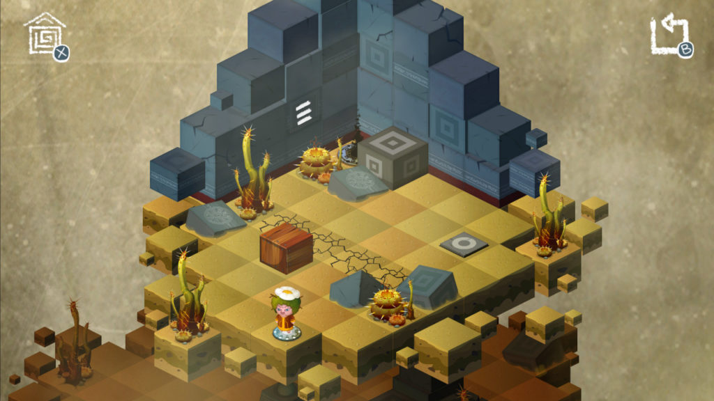 Il existe une dizaine de chapitres contenants chacun une dizaine de niveaux. La difficulté va également crescendo. Les premiers niveaux servent souvent à nous faire découvrir un nouvel élément de gameplay. Puis les suivants deviennent rapidement très coriaces pour notre cerveau. Heureusement, au bout d’un certain temps, il vous est possible d’accéder à la solution. Cette solution est une petite vidéo ou l’on voit notre personnage bouger tout seul pour atteindre la sortie. C’est très pratique, car si on ne veut pas avoir la solution entière, mais juste connaître la bonne façon de débuter, on peut arrêter l’aide au moment que l’on souhaite afin d’essayer de résoudre le casse-tête par soi-même.