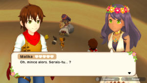 Totalement en français, l’aventure se déploie au fil des multiples rencontres du jeu. Chaque petit recoin de la carte est le siège d’un petit village dans le besoin. De nombreux dialogues feront l’objet de confidences et d’autres découvertes plus ou moins futiles. Les villageois vous feront alors part de multiples requêtes (passant aussi par votre boîte aux lettres pour aller plus vite !). La trame principale permet ainsi de récolter les 6 médaillons éparpillés dans le monde et détenus par des feux follets (nous reviendrons sur eux !), tandis que de nombreuses quêtes secondaires vous permettront de récolter moult et moult objets.
