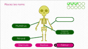 Si votre enfant n’a encore pas étudié les sujets abordés à l’école, il pourra apprendre ici. Les écrans de chargement donnent toujours une information qui sera utile. Les quizz sont soit des schémas sur lesquels il faut replacer les bons noms ou alors des questions avec des réponses à sélectionner.