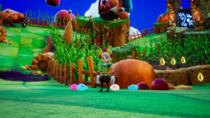 Le jeu a quelques idées intéressantes. Les costumes sont sympas, mais pas mal d’entre eux deviennent obsolètes et ils ne sont pas très amusant à utiliser à l’exception de certains qui seront parfait pour explorer les niveaux et découvrir chaque recoin à la découverte des Balan d’or. Les niveaux sont souvent dictés par les costumes et en ligne droite, on n’aura jamais l’impression d’avoir le contrôle total du jeu sauf avec quelques costumes qui donne une petite liberté qui se rapproche doucement d’un Super Mario 64, mais le level design ne permettra que trop rarement ce pseudo-monde ouvert. S’occuper des Tims est long et très ennuyeux voir leur trogne adorable ne changera pas ce fait, après il est possible d’obtenir un objet avec les Tims qui récompensera vos efforts, mais à quel prix ? L’optimisation de la version Switch gâchera le peu qu’on peut profiter du jeu vu qu’on aura constamment du 30 FPS qui empirera selon les niveaux. Finalement, le jeu a quelques qualités qui se remarquent après avoir fait la moitié du jeu ce qui est bien trop long, les niveaux sont soporifiques, l’histoire des différents chapitres est oubliable, le gameplay est mou et le jeu est trop facile. Malheureusement, l’univers haut en couleur de Yuji Naka et Naoto Oshima s’effondre complétement, mais le pire c’est que l’on retrouve de leurs anciens opus. Et même, si les FPS étaient optimaux sur la version Switch, le jeu a bien trop de défauts pour le rendre véritablement amusant, ils nous vendaient du rêve pourtant ce n’était que du vent.