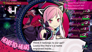 Au fil de votre avancée dans le niveau (correspondant à l’enfer d’une belle jeune fille), vous serez amené à croiser des fragments de son âme, qui vous en apprendront davantage sur son identité (son nom, son âge) et les raisons qui ont conduit à son empoisonnement. Celles-ci sont d’ailleurs plutôt bien amenées, parfois avec une pointe d’humour, mais toujours avec un certain sérieux. Les thèmes sont plutôt sombres (le harcèlement, le meurtre…) et d’autres un peu plus léger (la perversion de certaines lectures, le mensonge …). Mais ils s’achèvent par une morale généralement bien trouvée (et amenée), une fois que l’on a purifié l’âme en peine. On regrettera l’absence de sous-titres en VF, tant les dialogues sont importants et les histoires intéressantes à suivre ! Le jeu lorgnant souvent du côté des Visual Novel. C’est d’ailleurs au fil des discussions que vous pourrez faire évoluer certaines de vos compétences, même si le choix des réponses n’a pas de réel impact sur la suite du jeu. Ainsi, selon votre choix de réponse, vous augmenterez telle ou telle capacité (empathie, confiance…), cette dernière étant toujours précisée.