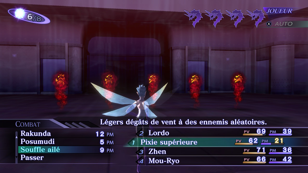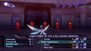 Pour avoir plusieurs types de magie différents, il va falloir organiser votre équipe, votre héros est immuable, il sera obligatoirement dans votre équipe et surtout, c’est un Game Over s’il meurt. Pour avoir plus de démons, il faut les soumettre en combat, lors d’un affrontement certains démons vont vouloir discuter avec vous. À vous de choisir les bons dialogues pour les convaincre de vous rejoindre. Ces derniers au départ sont très utiles pour compléter votre équipe, mais rapidement, on se rend compte qu’il gagne très peu d’expérience (ils demandent 1 tiers de plus que notre héros globalement). Nous allons alors pouvoir les fusionner pour obtenir un démon plus puissant dans la limite de niveau de notre héros.
