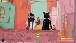 La vraie difficulté de Signs of Sojourner, c’est que la seule langue disponible est l’anglais. Et pour un jeu dans lequel les dialogues jouent un rôle primordial, c’est compliqué pour qui n’est pas anglophone avec un niveau correct. Sans la compréhension des enjeux, on passe complètement à côté de tout l’impact émotionnel du titre, et de fait, le jeu se coupe d’une grande partie de son public à cause de ça. C’est dommage, car la localisation aurait pu se faire, sachant qu’il n’y a que des dialogues écrits.