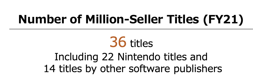 Il y a 36 titres sortis entre le 1er avril 2020 et le 31 mars 2021 qui se sont vendus à plus d’un million d’exemplaires sur la Nintendo Switch. 22 d’entre eux ont été publiés par Nintendo, tandis que 14 provenaient d’éditeurs tiers.