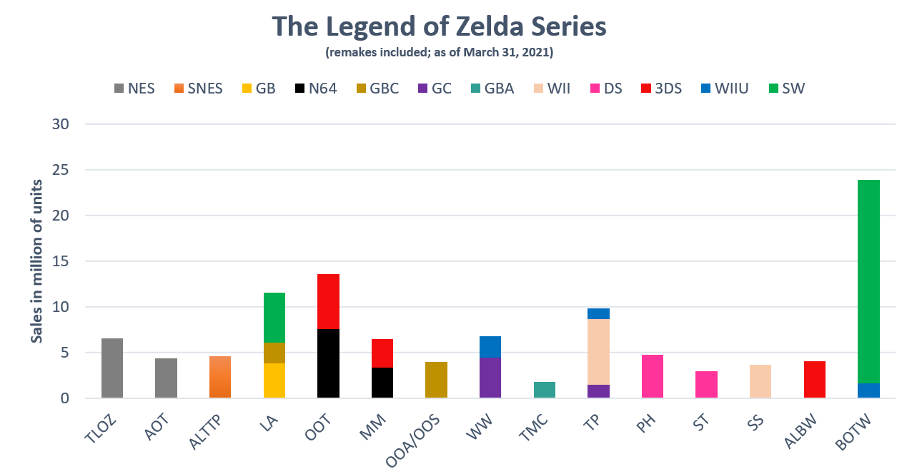The Legend of Zelda : Breath of the Wild s’est vendu à 830 000 d’exemplaires supplémentaires entre janvier et mars. C’est de loin le jeu le plus vendu de la série avec 22,28 millions d’unités au total.