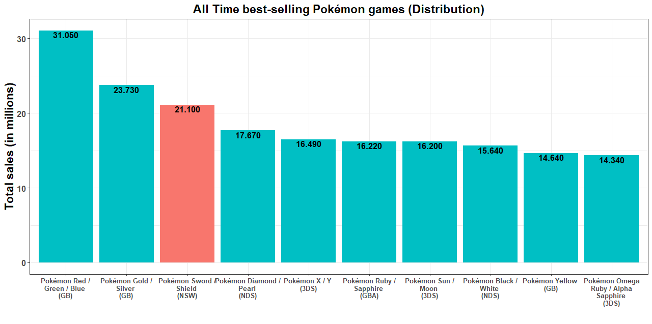 Pokémon Sword / Shield a été vendu à 21,10 millions d’unités (+750 000 unités ce trimestre). Il s’agit du troisième plus grand succès de la franchise, juste derrière les deux premières générations (Or/Argent = 23,1 millions et Bleu/Rouge/Vert = 31,38 millions).