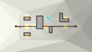 Concernant les graphismes, ils sont minimalistes et c’est voulu. De toute façon, vous serez tellement concentrés sur la résolution de votre puzzle que vous n’y ferez pas forcément attention. Pour vous les décrire, il s’agit d’un fond uni qui va se diviser en formes géométriques lorsque vous activerez un interrupteur de sorte qu’à la fin du niveau vous aurez une sorte de mosaïque discrète qui se sera formée en arrière-plan. Cette mosaïque conserve la couleur principale de départ proposant à chaque division, une couleur légèrement plus claire ou plus sombre pour en faire apparaître les formes géométriques. C’est très léger, mais aussi très agréable.