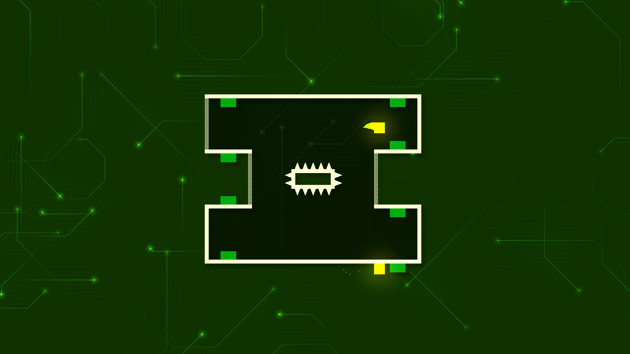 Le joueur pilote deux petits carrés en même temps de manière symétrique par rapport à une ligne horizontale. Les seuls mouvements possibles sont d’aller à droite ou à gauche, le but étant d’activer une série d’interrupteurs deux par deux en positionnant les deux carrés dessus. Jusque là rien de bien compliqué !