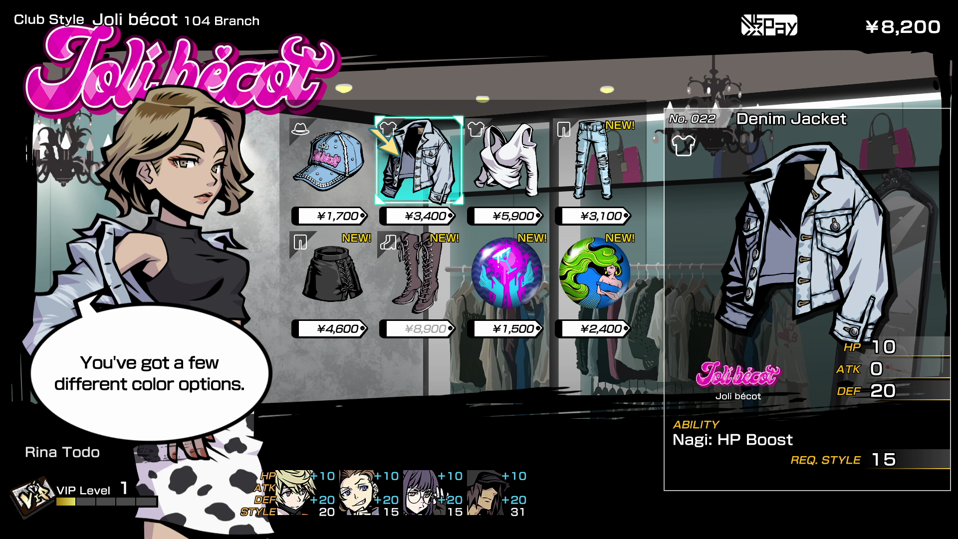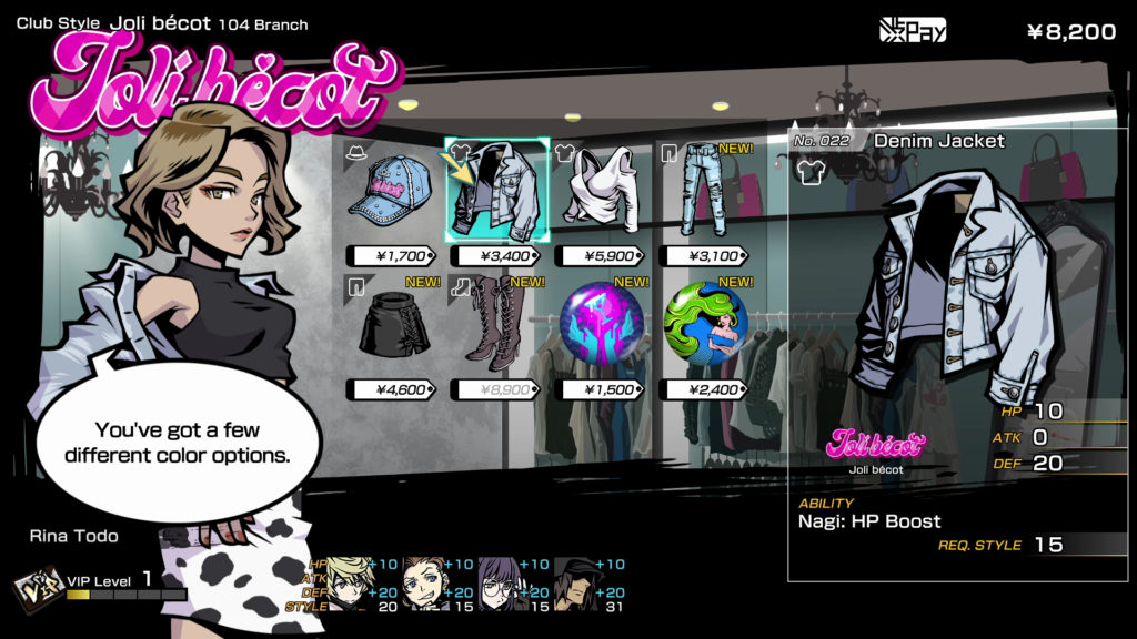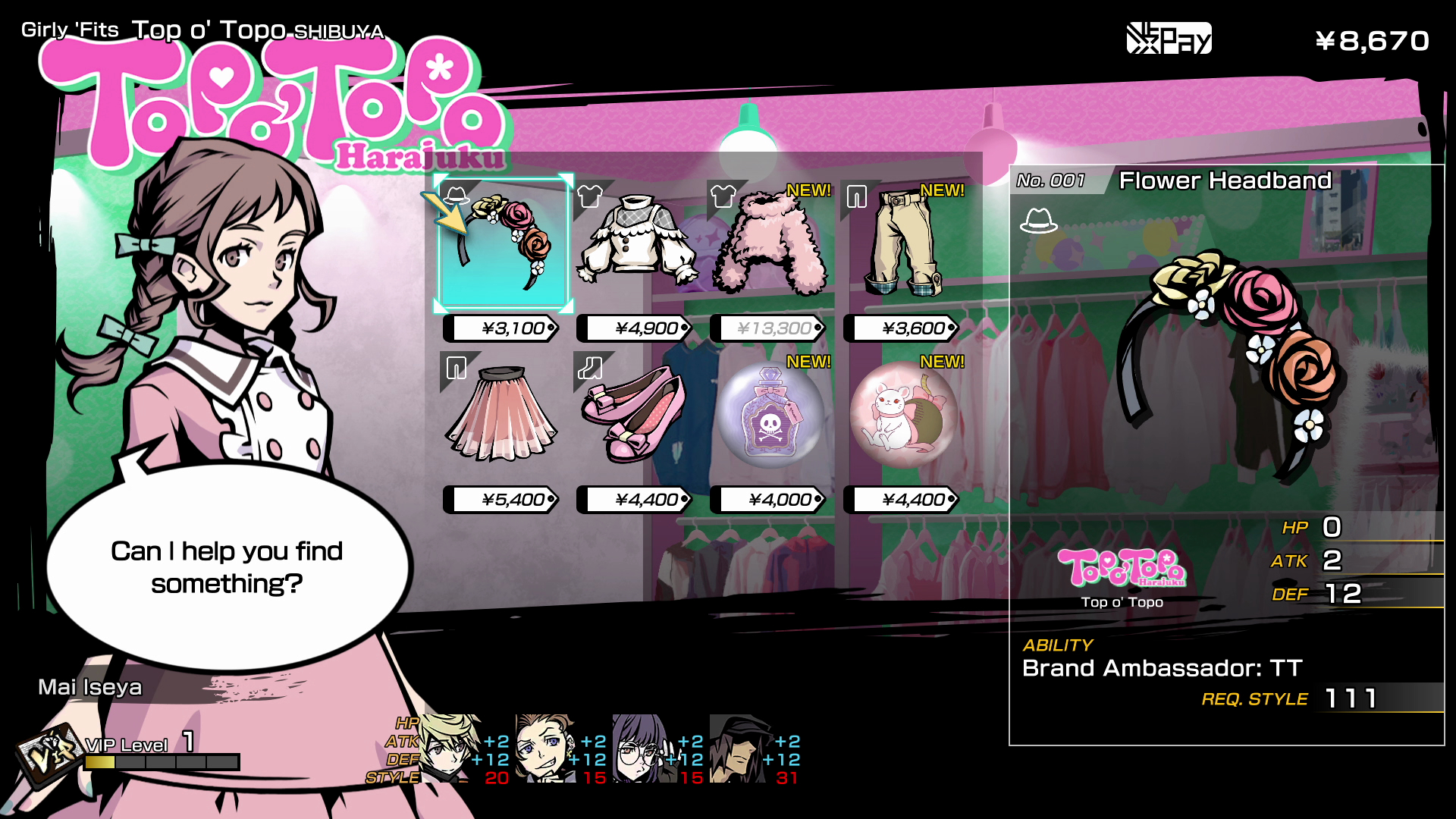 Pour les aider dans leur quête, les joueurs auront accès à de nombreux équipements disponibles dans les différents magasins de Shibuya. Avec plus de 270 vêtements et accessoires, il y en aura pour tous les goûts ! Ils pourront également améliorer leurs stats grâce aux recettes variées proposées dans les restaurants de la ville.