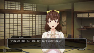 Comme vous vous en doutez les jeux sont des visuals novel et à part lire les dialogues, il vous demandera quelques rares actions : composer un numéro de téléphone, résoudre une mini énigme… Cependant, comme c’est un jeu d’enquête, pour chaque personne que vous interrogerez, vous pourrez choisir de poser des questions sur diverses personnes, des objets ou sur des informations que vous aurez récoltées auparavant ainsi que d’inspecter les lieux ou encore les personnes.