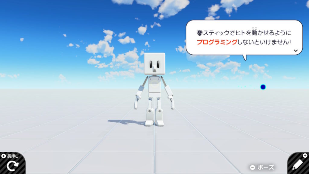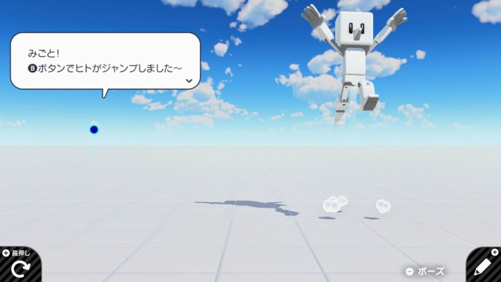 Dans le mode Programmation libre, vous pourrez donner vie à vos idées en utilisant tout ce que vous avez appris au cours des leçons puis, d’une simple pression d’un bouton, passer de l’écran de programmation à l’écran de jeu pour essayer votre création et voir comment elle se comporte manette en main.