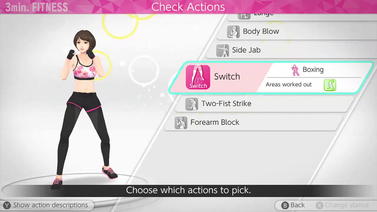 En utilisant les contrôles par mouvement des Joy-Cons de la Switch, les joueurs pourront donner des coups de poing, de coude, de genou et de pied dans différentes séquences d’entraînement en synchronisant leurs mouvements avec le rythme. Ceux qui cherchent à améliorer leur condition physique sur le long terme peuvent bénéficier du mode entraînement personnel, un programme d’entraînement personnalisé en 15 minutes seulement, tandis que ceux qui recherchent une forme plus occasionnelle peuvent profiter du mode Fitness 3 minutes, un entraînement rapide et facile avec de nombreux exercices à explorer.