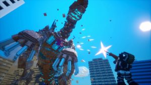 Avec une sortie simultanée sur Pc, Ps4 et Nintendo Switch, la partie technique du titre de Yuke’s sur notre console hybride est forcément regardée à la loupe. Même si le parti pris graphique semble facile à faire tourner, il faut stipuler que tout ce qui dépasse un tant soit peu du sol est destructible. Les voitures, les arbres, les barrières et bien sûr les bâtiments, tout est susceptible de partir en petits morceaux. Les immeubles notamment subissent les foudres des tirs ennemis et alliés de manière plutôt convaincante. Ils commencent par perdre un morceau à l’endroit touché par une arme, ce bout en moins nous offre alors un abri pratique contre les ennemis trop entreprenants, jusqu’à ce que, victime d’un tir plus soutenu, ce soit tout l’immeuble qui s’effondre.