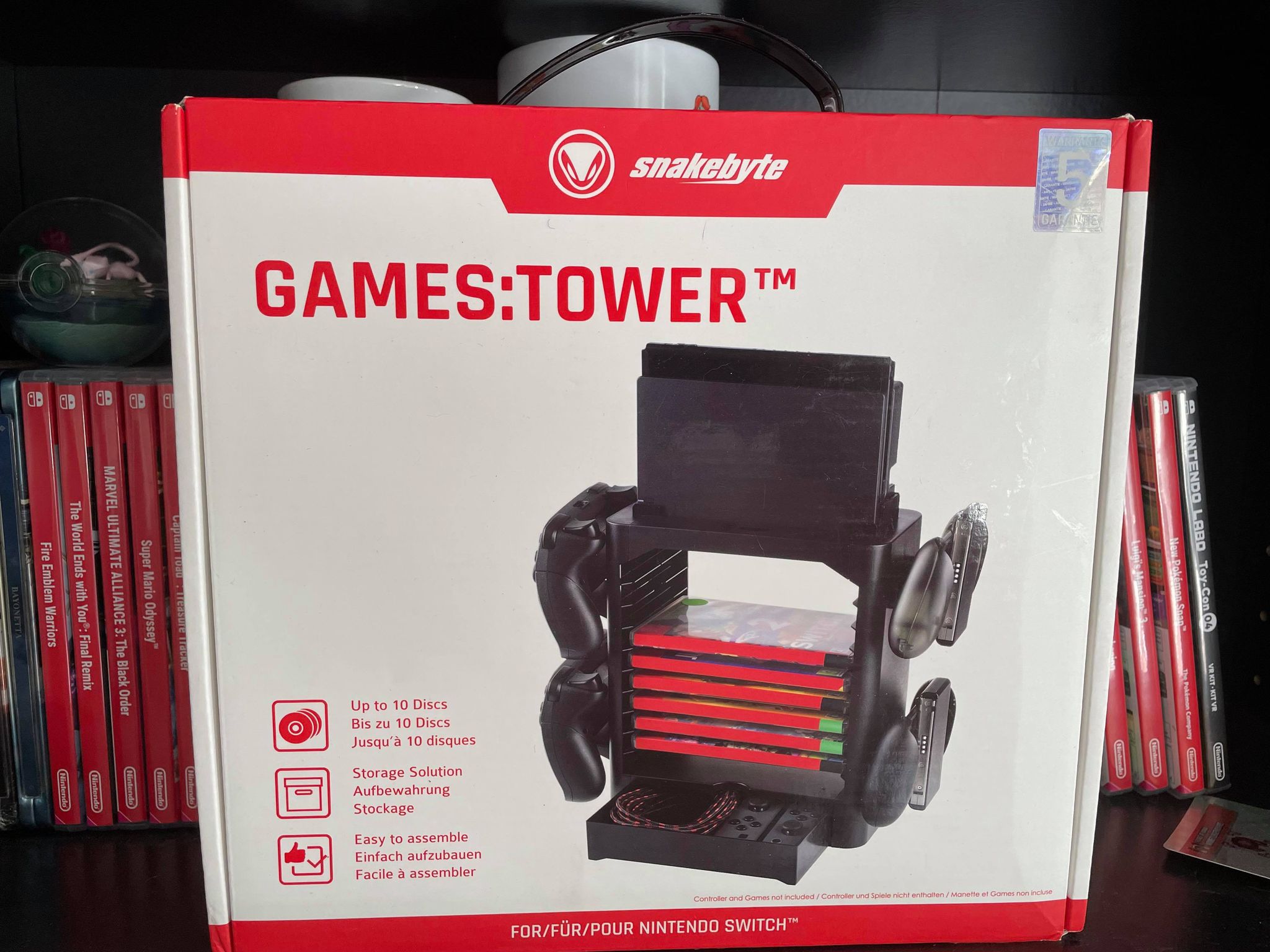 Présentation : Préparez-vous à mettre à niveau votre équipement de jeu Nintendo Switch™ avec le GAME:TOWER™. Ce support fournit un espace de rangement indispensable pour tous vos accessoires de jeu Switch. Il peut accueillir jusqu’à 4 manettes ou joy-con et jusqu’à 10 jeux. Le sommet de la tour est une base pour votre socle Switch™ station d’accueil, alors que le bas de la tour comprend un tiroir pour les câbles de charge et les joy-con. Prix conseillé : 19.99€
