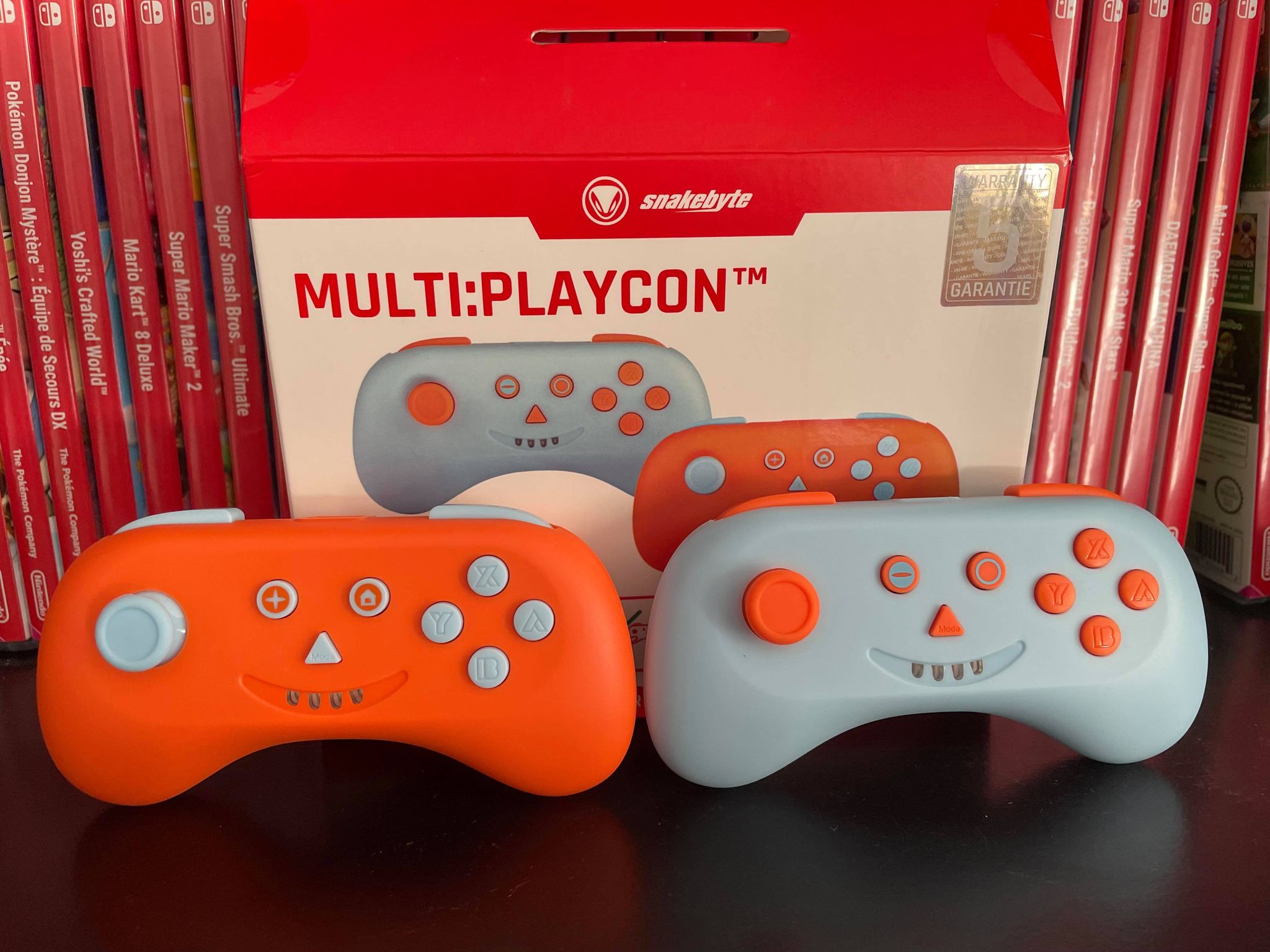 Manettes dédiés aux petites mains, et surtout aux enfants, le MULTI:PLAYCON se présente avec un design enfantin et des couleurs vives. Le couplage sans fil se fait assez facilement, comme toutes autres manettes sur Nintendo Switch. Sans pile, la manette se charge via usb (câble fourni). Elle est très solide, elle a tenu bon face aux nerfs de ma femme salée sur Splatoon, mais aussi à une journée avec des enfants peu délicats. On conseille donc vivement cette manette renforcée, vendue par deux, pour 40€. Par contre, vous l’avez surement remarqué, il manque des boutons. Du coup l’utilisation se restreint aux jeux utilisant les commandes de bases (au hasard, la plupart des jeux dit « pour enfants ») et les jeux de type puzzle games.