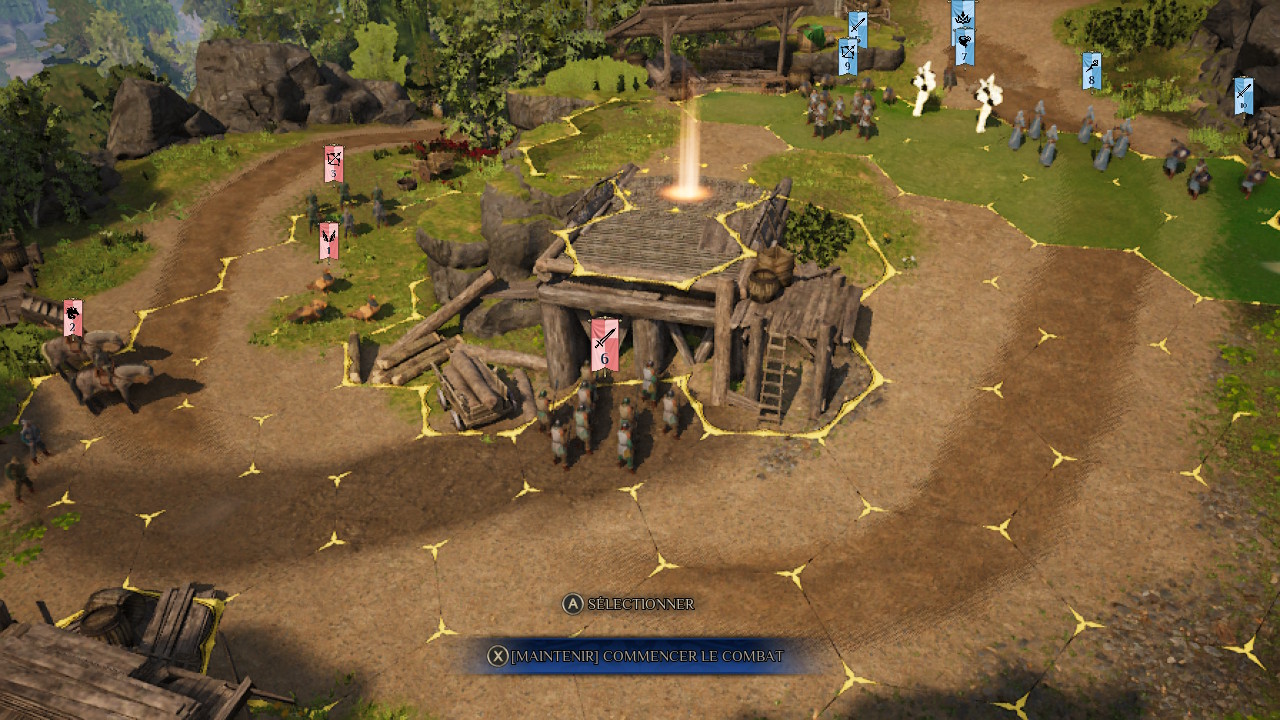 L’autre grosse différence entre la preview Pc et cette version finale sur Switch a trait aux contrôles. Nous passons d’un combo clavier/souris à des raccourcis manettes, toutefois très efficaces. Ceux-ci permettent une utilisation optimale des fonctions, en combat comme en exploration. Nous accédons facilement au menu ainsi qu’aux statistiques des unités, la navigation dans les menus se montrant très intuitive. Une aide à la maniabilité, présente en permanence à l’écran sans possibilité de la retirer, alourdit malheureusement notre fenêtre inutilement. Gageons qu’un patch arrivera rapidement et nous débarrassera de ces indications visuelles vite caduques…