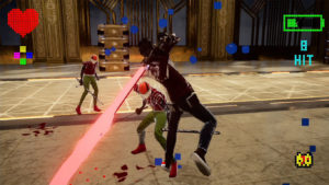 A commencer par le combat, mécanique principale du jeu (s’agissant d’un “beat’em all”), la panoplie de mouvement de Travis est plus complète que jamais, il est possible de combiner des attaques légères et lourdes, esquiver et verrouiller ses ennemis. Vous devrez également toujours faire attention au niveau de batterie de votre beam katana qu’il vous faudra recharger, petit ajout agréable sur ce point, il est possible de se déplacer pendant le rechargement. Un système d’esquive parfaite a été ajouté permettant avec le bon timing de ralentir le temps et punir ses adversaires d’une salve de coups extrêmement rapide.