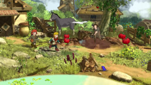 D’autant que le jeu nous gratifie d’emblée de jolis décors détaillés, de personnages attachants et d’un bestiaire fantastique évoquant tout aussi bien les clients des bains du Voyage de Chihiro, que les paresseux félins du Royaume des Chats, auquel fait écho la paisible bourgade de Naneko, plus avant dans l’aventure. Les mélodies made in Ghibli s’apprécient, la réalisation artistique ravit… N’en jetez plus, nous sommes conquis !