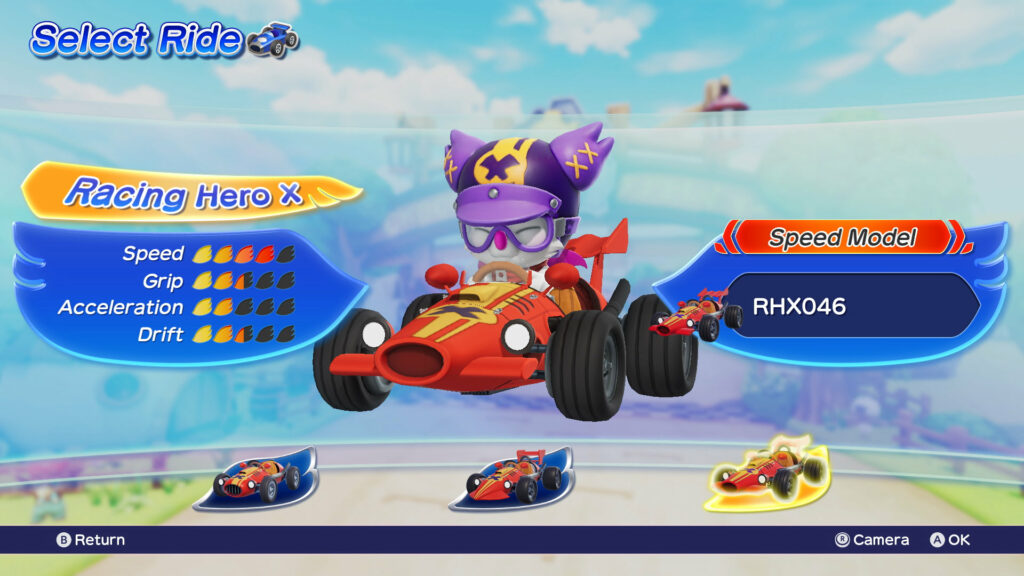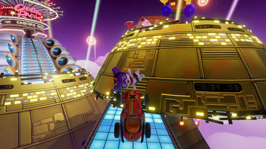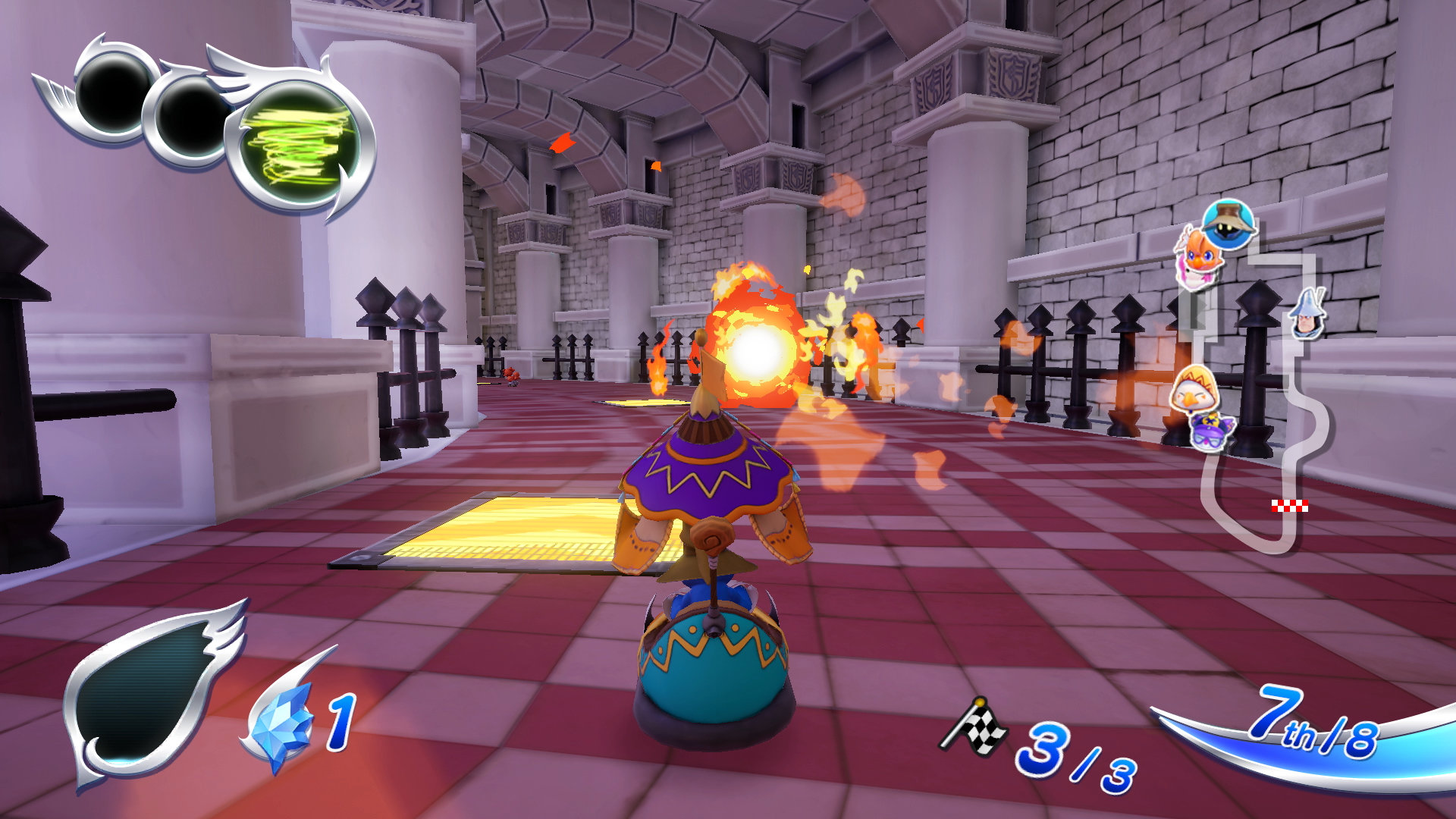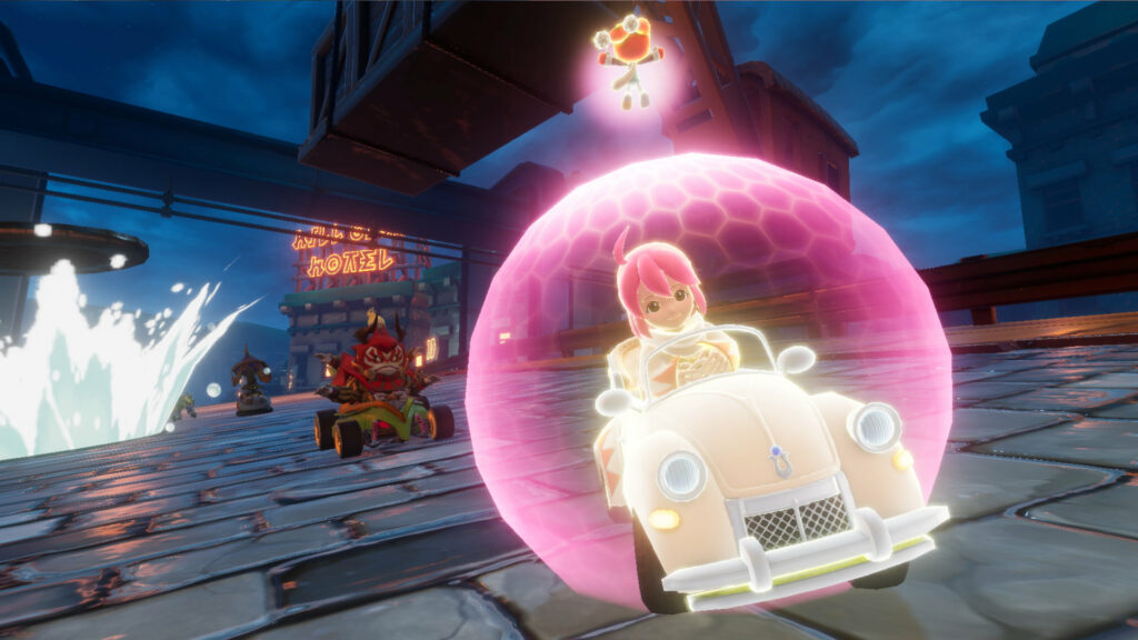 - Des magilithes magiques : en récoltant des magilithes trouvées dans les œufs magiques disséminés sur les circuits, les pilotes s’imprégneront de magie, comme Brasier et Aéro, qu’ils pourront utiliser contre leurs adversaires pour prendre l’avantage et passer la ligne d’arrivée en premier.