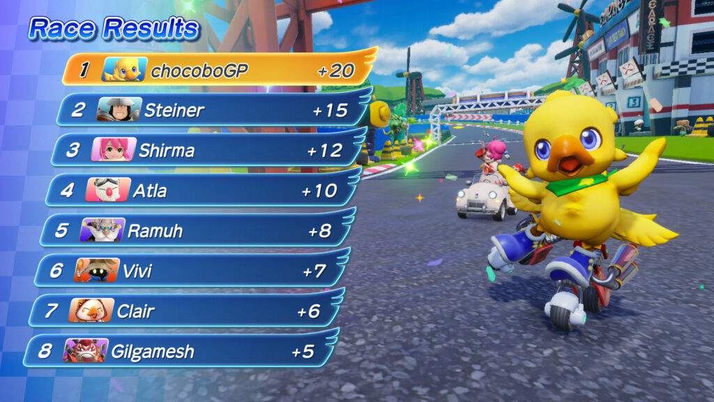- Des courses haletantes : les joueurs piloteront sur divers circuits inspirés des franchises Chocobo et FINAL FANTASY, y compris le circuit de test de Cid, les rues d’Alexandrie, Zozo et le Gold Saucer.