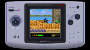 Si le jeu Metal Slug est anthologique, c’est parce qu’il est sorti sur une console d’anthologie : la Neo Geo. Au début des années 90, cette console faisait rêver tous les gamers en leur promettant (et c’était vrai) l’arcade à la maison pour un prix exorbitant, et avec des jeux à des prix tout aussi indécents. Ensuite, si la Gameboy a tout cassé en termes de consoles portables, SNK a quand même produit deux consoles portables, la NeoGeo Pocket et la NeoGeo Pocket Color. C’est sur cette dernière que l’on retrouve le jeu culte Metal Slug sous les noms de Metal Slug First Mission et Metal Slug Second Mission qui regroupent les premiers volets de la série.