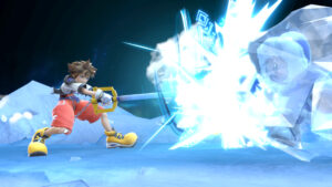 Sora peut réaliser toutes sortes de combos intuitifs déclinés à partir de ses attaques normales, aériennes ou côté, mais également faire appel à des sorts de magie tout comme dans KINGDOM HEARTS. Les fans de la série reconnaîtront sans mal les sorts Brasier X, Foudre X et Glacier X, qui peuvent être utilisés de multiples façons pour créer le chaos sur le champ de bataille. Sora peut aussi compter sur son Smash final, « Sceau de Serrure » pour expédier ses valeureux adversaires dans les airs.